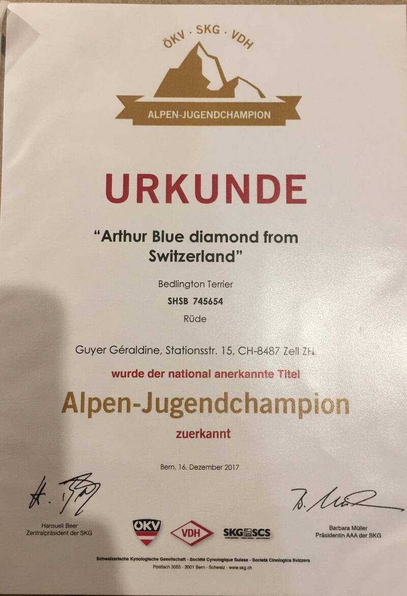 Willkommen auf der Champions-Seite von Blue Diamond from Switzerland. Hier präsentieren wir stolz unsere Champions, darunter Bedlington Terrier Arthur Blue Diamond from Switzerland und seine Eltern Lilly Garden Calypsa und Jacky Garden Calypsa.